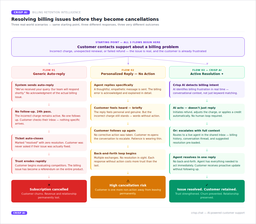 How to retain customers through support: 5 use cases where Crisp AI prevents churn