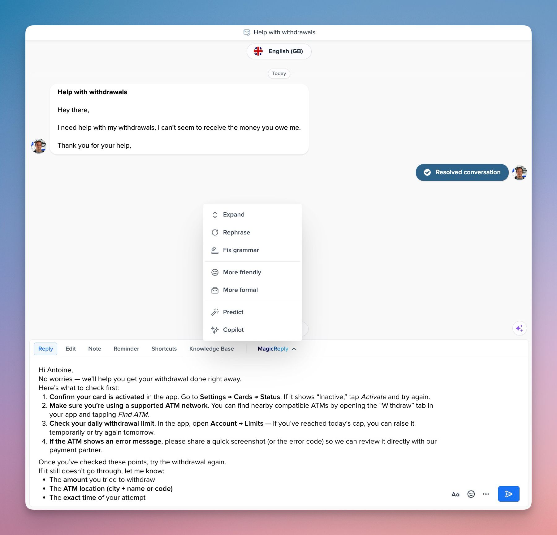Once a conversation reaches an agent, AI can still speed things up — without sacrificing quality.