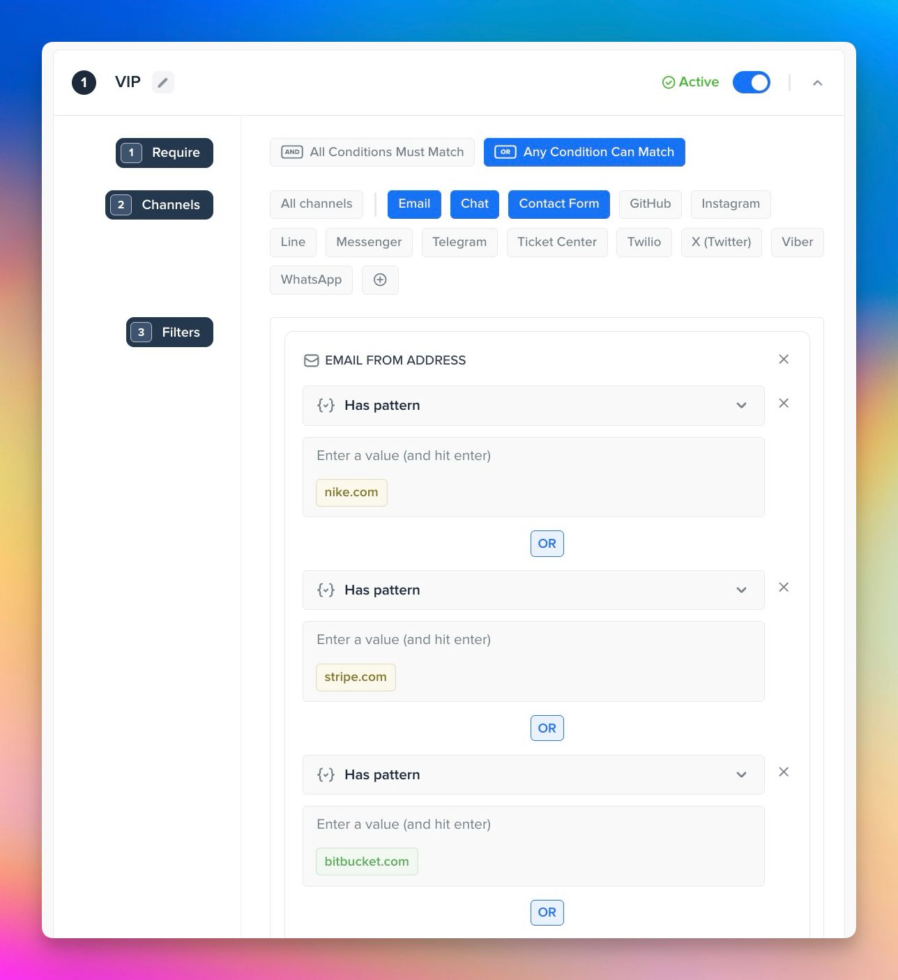 Set up smart ticket routing based on customers' email, keywords, topic, and urgency, so every request lands with the right agent instantly.