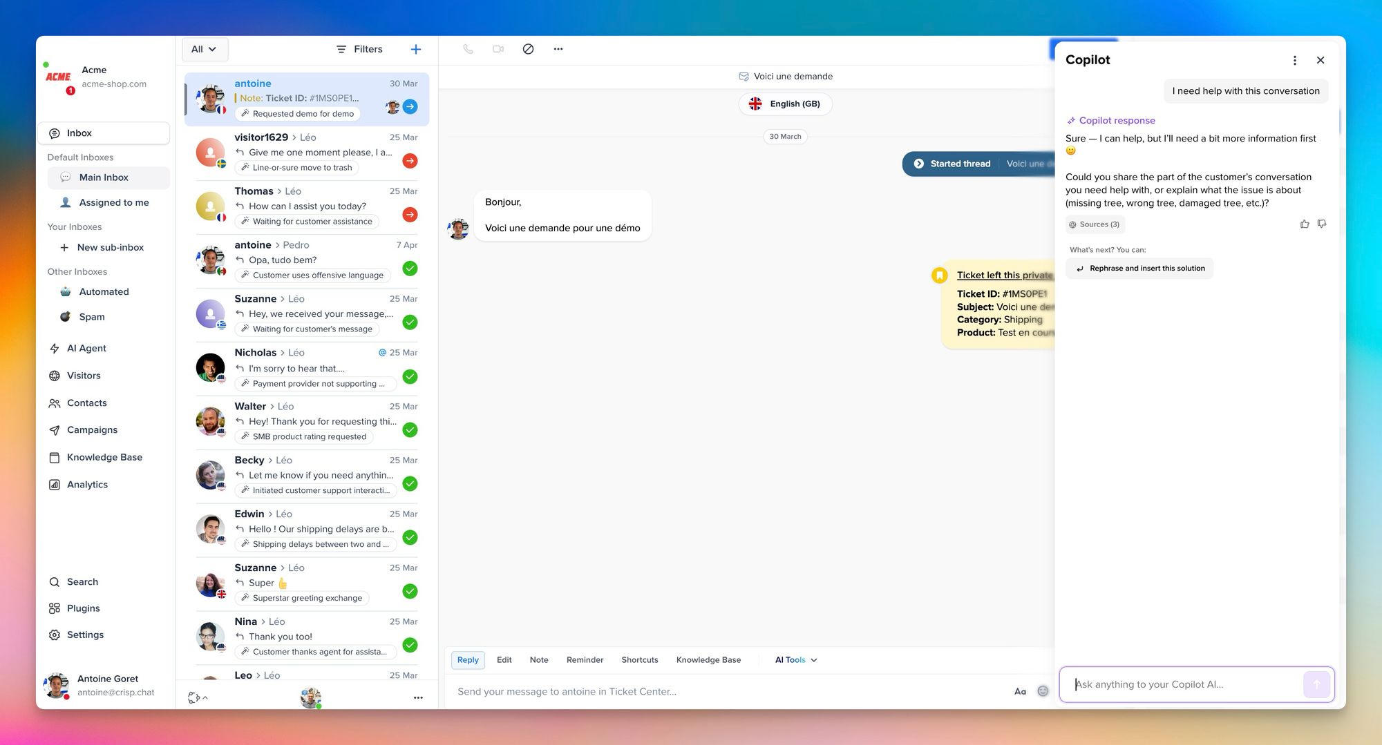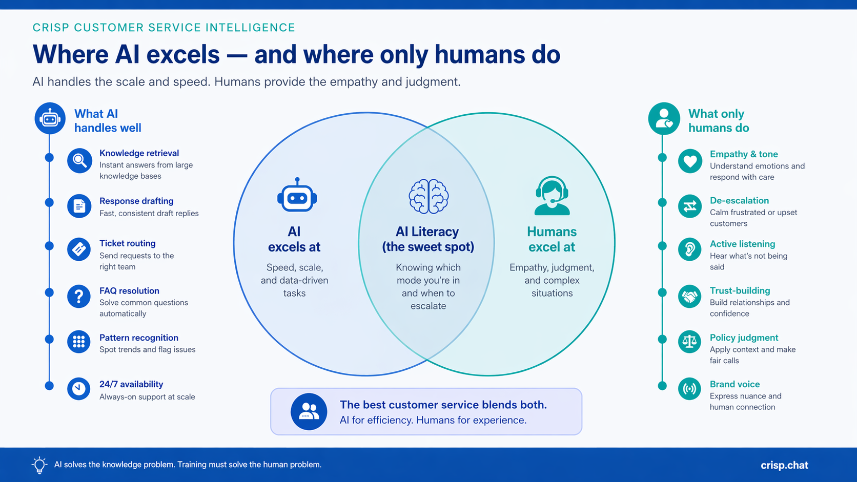 Crisp's product architecture aligns directly with the training model described in this post. Not as a feature set, but as a structural philosophy about what AI should and shouldn't be responsible for in a support operation.