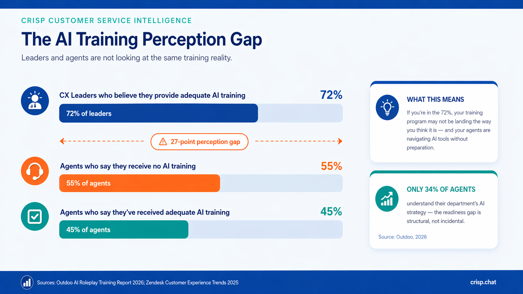 72% of CX leaders believe they provide adequate AI training. 55% of agents say they receive none.